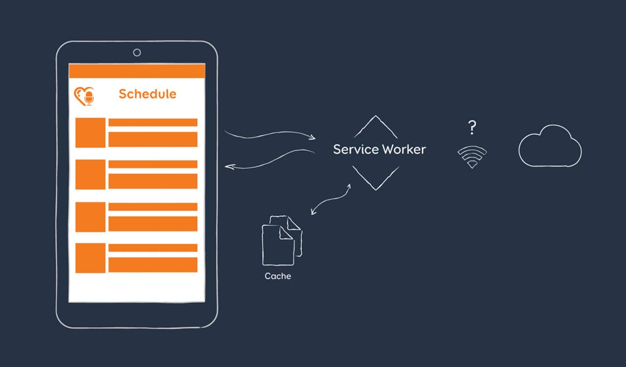 Zoe ne s’en est peut-être pas rendu compte mais le programme de la conférence a été mis en cache pour un accès hors ligne lorsqu’elle visitait le site. Même si la connexion est lente, ou inexistante (ce qui arrive parfois sur les wifis ouverts des conférences), elle va quand même pouvoir accéder au site dans des conditions optimales.