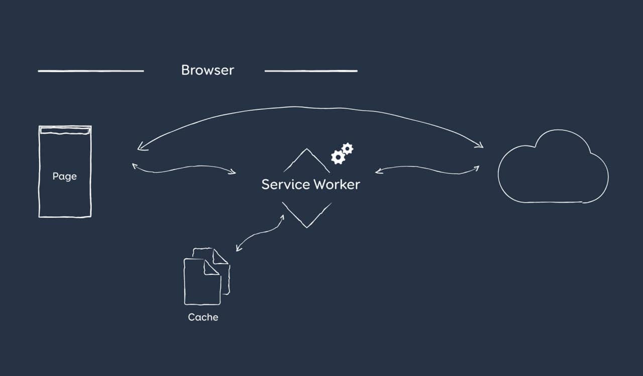 Pour ce petit tour de magie, nous allons à nouveau faire appel à nos Service Workers. Je vous avais dit qu’ils fonctionnaient un peu comme des sortes de mini proxy. Ils peuvent intercepter la requête avant qu’elle aille au serveur et proposer des fichiers directement disponibles dans le cache pour accélérer les pages ou les afficher même s’il n’y a pas de connexion. Dans ce cas, le navigateur n’ira pas chercher les fichiers sur le serveur mais va en premier les proposer à partir du cache. En tâche de fond ensuite il pourra aller comparer les fichiers proposés depuis le cache à ceux disponibles sur le serveur et ne les récupérer que si leur version est plus récente (pour ensuite mettre à jour le cache). On peut se servir de cette technique pour faire fonctionner des pages hors ligne, mais aussi pour mettre en cache par exemple une partie de l’interface pour charger ensuite uniquement le contenu en asynchrone et rendre les sites ou Web Apps plus rapides.