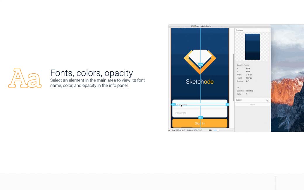 Sketchode.com, a free Sketch plugin to get specifications and export elements