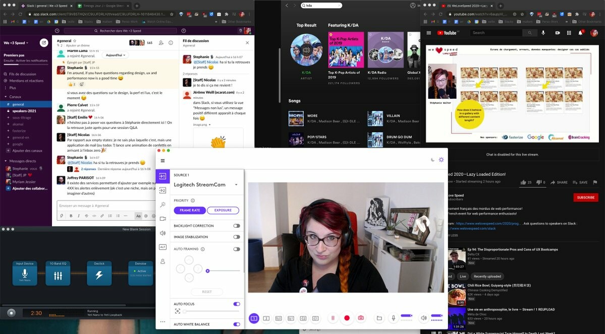 This week I gave a talk on performance and designing the “forgotten” cases for we love speed. Here’s a “behind the scene” screenshot, getting ready for the Q and A. Am I listening to KDA and to my own talk to answer the questions? Maybe… That’s kind of the “nice” part of pre-recording you talk: you can answer questions on the slack while they broadcast it. Sounds like we finally found a way to clone me, my boss will be happy 😀