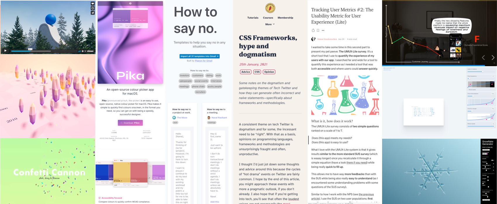 Every day, I share on twitter and LinkedIn a list of curated articles I read, resources and tools about UX Design, User Research, UI and mobile design, HTML, CSS, the web industry, some process, some inspiration, etc. This is an archive of everything I shared this week.