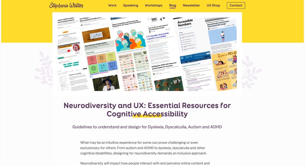 Interested in learning and designing for cognitive accessibility? I put together a list of resources and guidelines to understand and design for Dyslexia, Dyscalculia, ADHD, and Autism. So here we go, new article on the blog: Neurodiversity and UX: Essential Resources for Cognitive Accessibility. If you find it interesting, consider sharing the LinkedIn, TwitterX and Mastodon post.