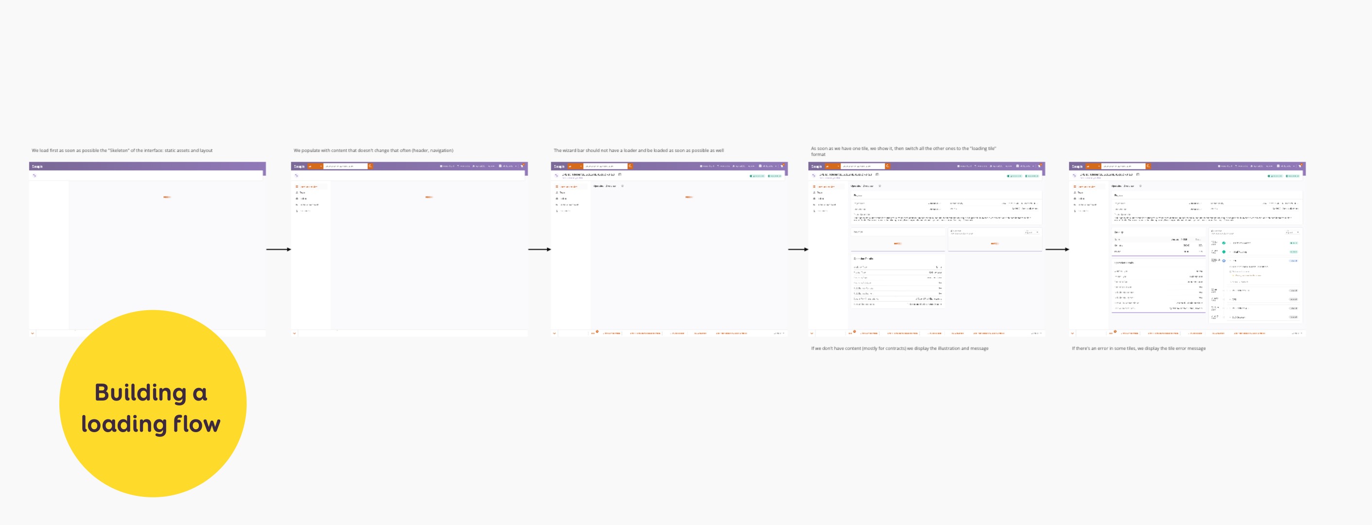 Je communique cela à mes équipes de dev à l’aide d’un schémas de chargement (ou loading flow). L’idée est de montrer les différentes étapes de chargement.