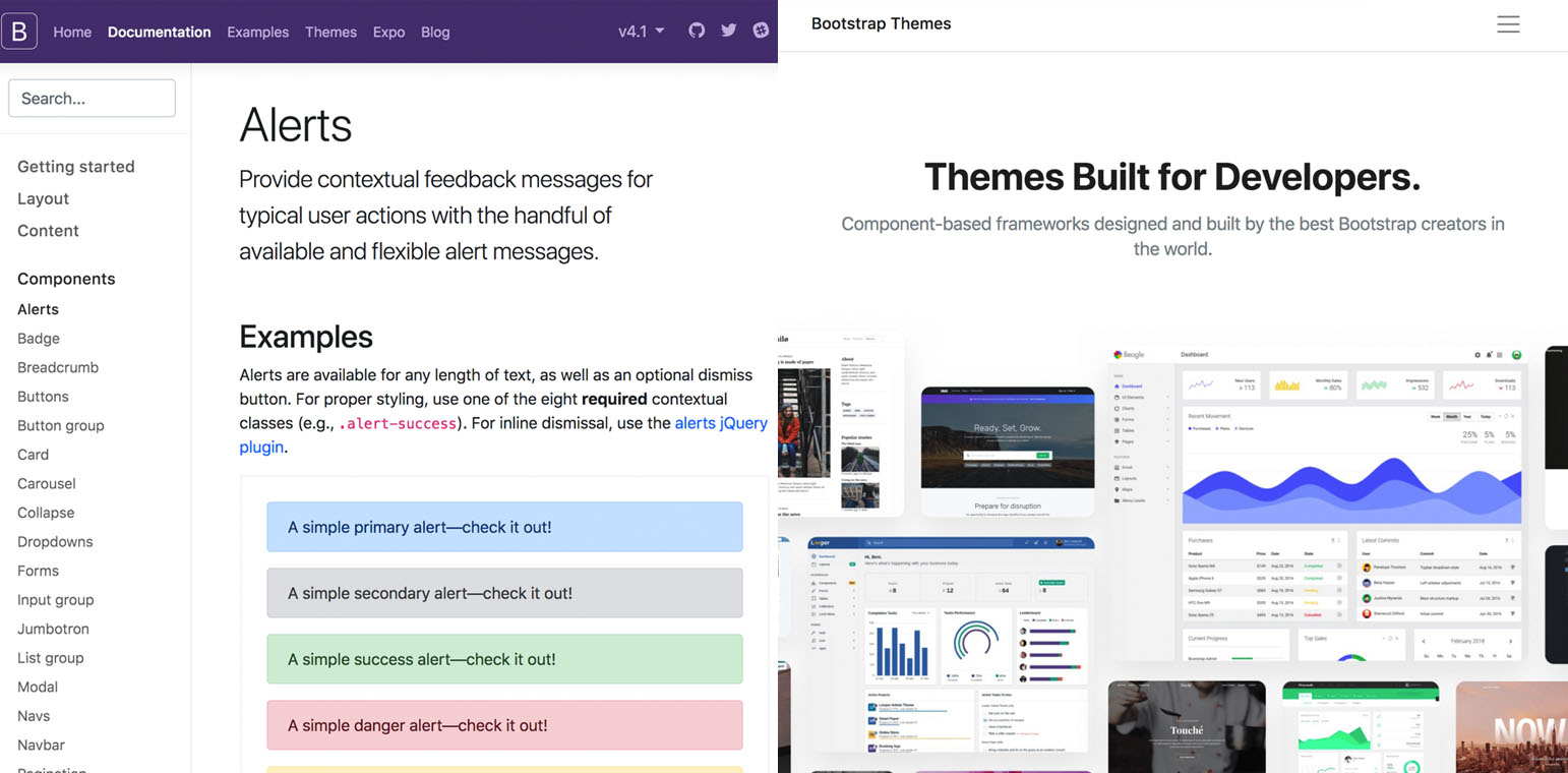 Pour que l’on parle de la même chose, je vais commencer par quelques définitions. Quand je parle de “Framework UI” j’entends par là un outil qui propose un ensemble de composants permettant de construire une interface. Le plus connu c’est bien sûre Bootstrap. Un Template quant à lui désigne un thème graphique appliqué à un site web indépendamment de son contenu. Les templates sont souvent créés à partir de composants du framework UI, mais aussi parfois à partir de zéros. Bootstrap par exemple propose un bon nombre de templates pour des dashboard et d’autres systèmes. Dans les deux cas, ils permettraient en théorie de construire des sites et interfaces web.