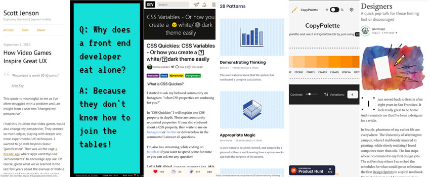 This week’s selection: video games inspire great UX, dev jokes, advice for new designers, accessibility, CSS Grid Layout, color palette tool, the hover: media query, performance, design system, inconsisten browser behavior with buttons, AI design patterns, email support table, dark theme with CSS variables, etc.