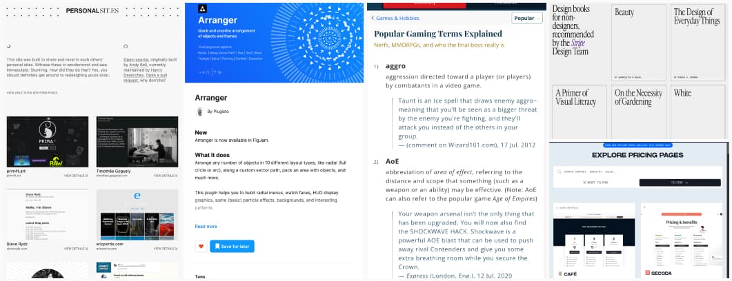 - SaaS Pricing Explorer: very niche, I know, but if you need inspiration for SaaS pricing (both page design and actual prices), that is a useful site.