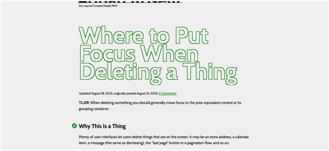 Where to Put Focus When Deleting a Thing: TL;DR: When deleting something, you should generally move focus to the prior equivalent control or its grouping container