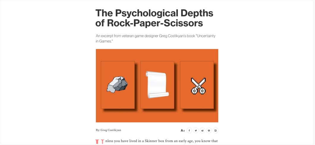 The Psychological Depths of Rock-Paper-Scissors rock-paper-scissors is a game of player unpredictability in its purest form, for this single factor is the sole determinant of the game’s uncertainty, its raison d’être, and its cultural continuance.