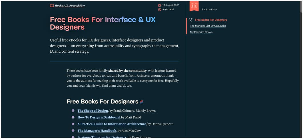 Free Books For Interface & UX Designers, on everything from accessibility and typography to management, IA and content strategy.