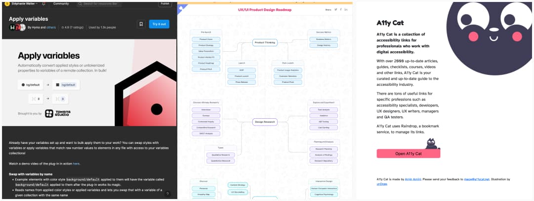 - Apply variables: a Figma plugin to apply variables to your mockups in bulk (for example, if you have a file that doesn’t use them and want to quickly migrate it to using variables)