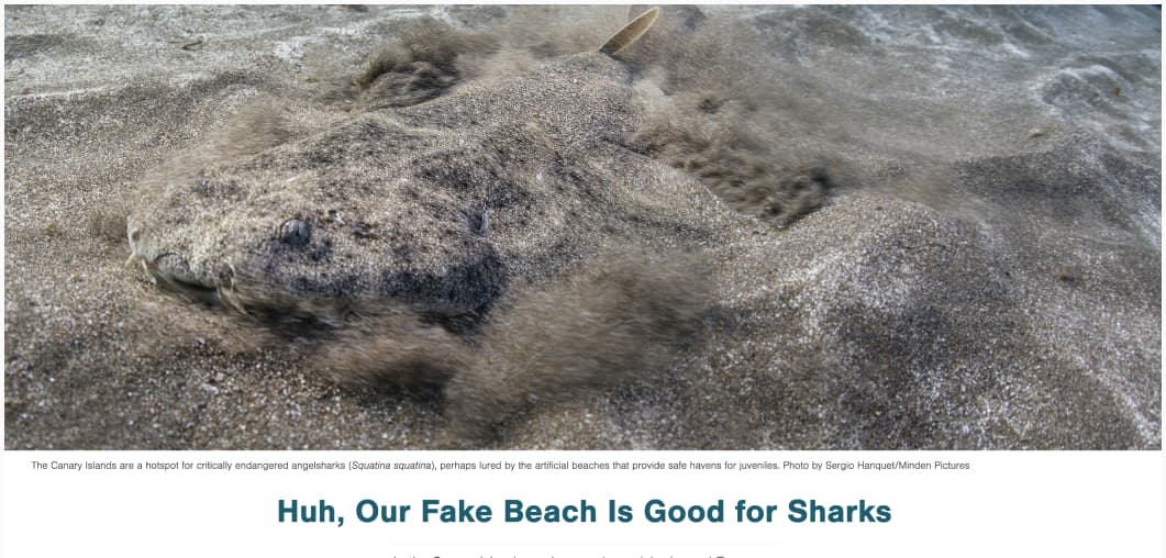 - Huh, Our Fake Beach Is Good for Sharks: how the diving community plays a huge role in finding and tagging the angelsharks, hidden in the sand, and how the population of sharks adapted to different changes in their ecosystems