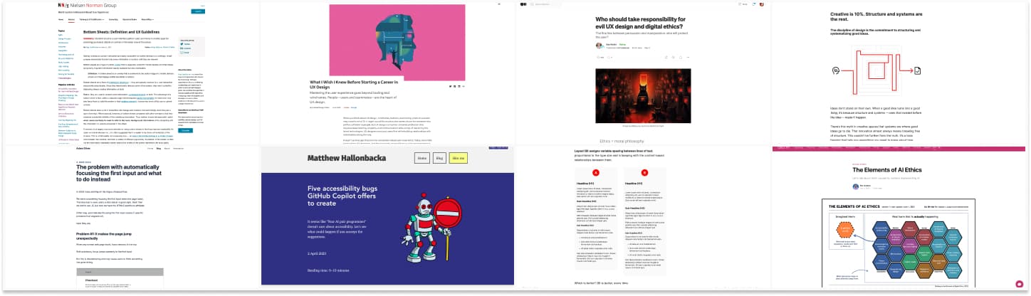 On Twitter, LinkedIn, and Mastodon, I share curated articles I read, resources and tools about UX Design, User Research, UI and mobile design, HTML, CSS, the web industry, some processes, some inspiration, etc. This is an archive of everything I shared this week. And some extra links that I decided to only share for the blog readers. Also, subscribe to the newsletter to get notified when those are published!