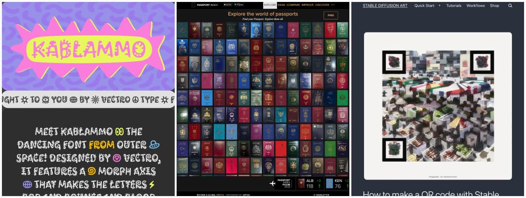 - Passport Index: an exploration of all the passports of the world, what they look like and their mobility score (where you can go without a visa)