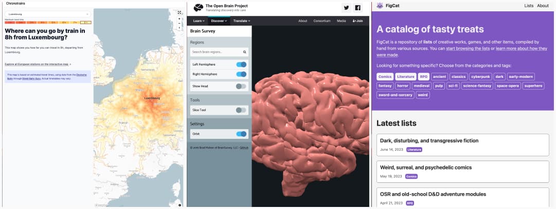 - Chronotrains: a map that shows where you can travel in 8h, departing from a specific European city