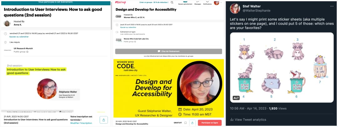 - Monday 17 and Friday 21: I’m doing a 2h workshop on user interviews, and we will use my interview cards to build better interview guides. There might still be some tickets for Friday.