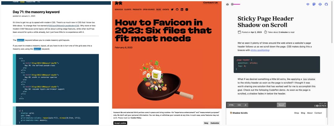 - Day 71: the masonry keyword – Remember when we used to need tones of JS to get masonry? Well, we won’t anymore, one line of CSS my friends: grid-template-rows: masonry; (only supported in Firefox but I have hope it’s coming)