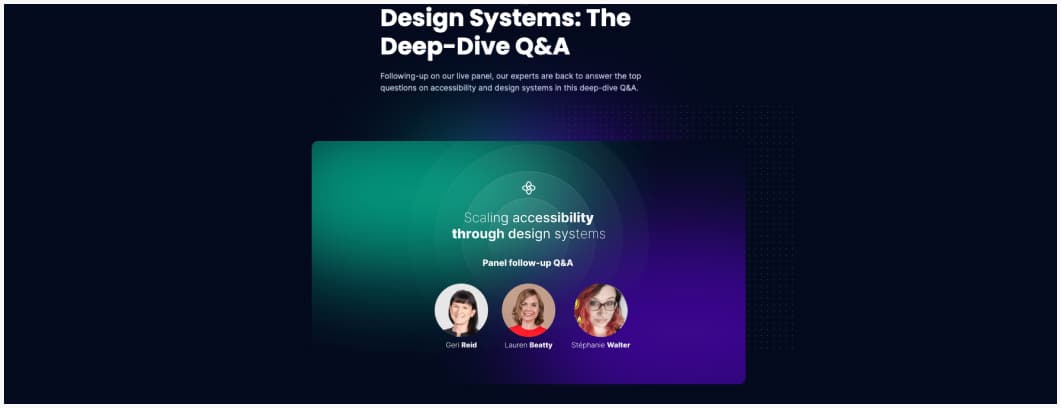 Accessibility and Design Systems: The Deep-Dive Q&A: Geri Reid, Lauren Beatty and I answered some deep-dive questions about accessibility after our panel!