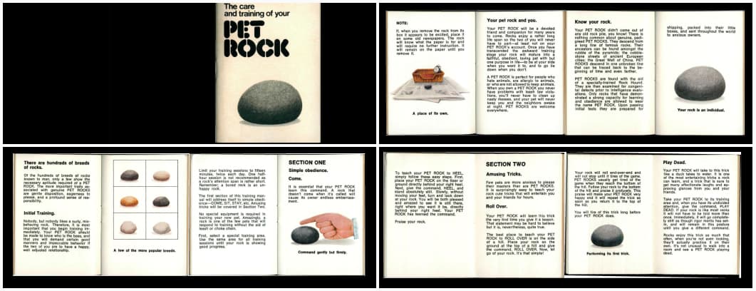 The care and training of your pet rock: so, in 1975, Gary Dahl created “Pet Rock” as a collectible toy, and you can find the care guide on the internet archive. I love that someone took the time to create this.