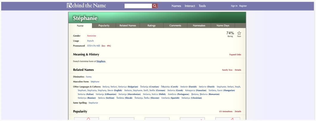 Behind the Name, the etymology, and the history of first names. Apparently, mine is considered refined but also strange and nerdy. I’m okay with that.