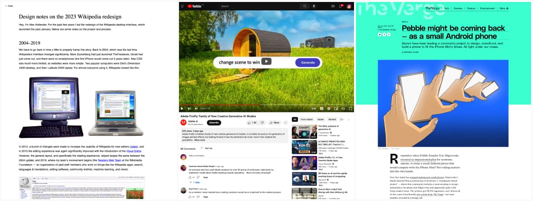 - Design notes on the 2023 Wikipedia redesign: I like the new design because it has a fixed with on the content now, it’s easier to read on a big screen. I know some developers who used Wikipedia as an example of “but look, the content takes the whole browser it’s awesome” will be sad though.