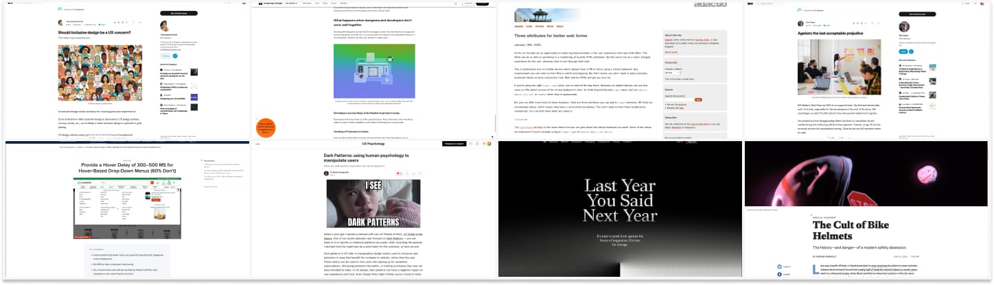 On Twitter, LinkedIn and Mastodon, I share curated articles I read, resources and tools about UX Design, User Research, UI and mobile design, HTML, CSS, the web industry, some process, some inspiration, etc. This is an archive of everything I shared this week. And some extra links that I decided to only share for the blog readers. Also, subscribe to the newsletter to get notified when those are published!