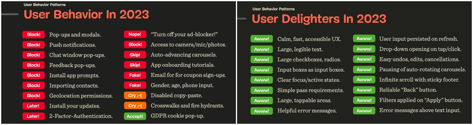 A list of user frustrations and user deligthers, to build less frustrating experiences in 2023