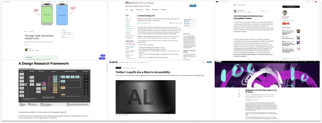 Every day, I share on Twitter and LinkedIn a list of curated articles I read, resources and tools about UX Design, User Research, UI and mobile design, HTML, CSS, the web industry, some process, some inspiration, etc. This is an archive of everything I shared this week.