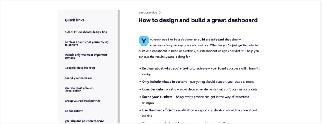 12 tips to help you design dashboards. I’m not 100% convinced about the rounding the numbers part, I think it depends on what types of numbers. Like if the sum needs to be 100%, rounding might not work.