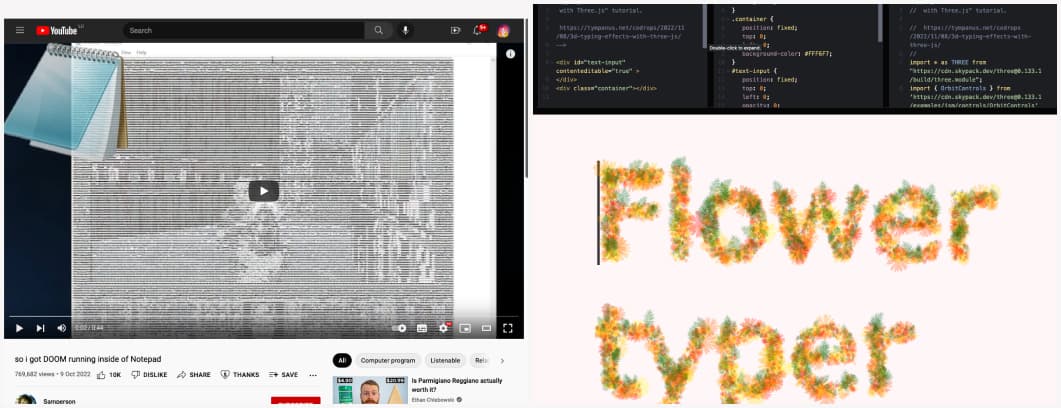 This codepen demo of some Flower Typer in Three.js is the cutest
