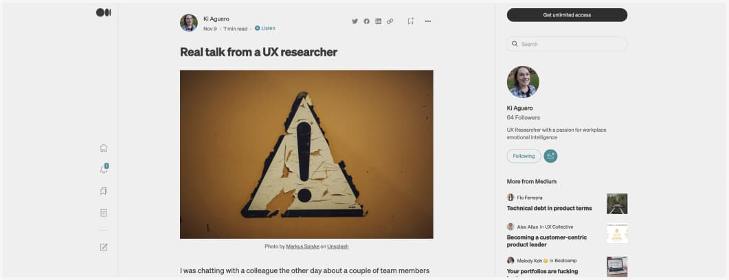 If you want to seek a career in UX Research (or Design), you should read “Real talk from a UX researcher“, a very honest article by Ki Aguero to understand what that job actually looks like, on real projects, far away from the fluff or social media and bootcamp promises