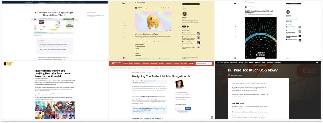 Every day, I share on Twitter and LinkedIn a list of curated articles I read, resources and tools about UX Design, User Research, UI and mobile design, HTML, CSS, the web industry, some process, some inspiration, etc. This is an archive of everything I shared this week.