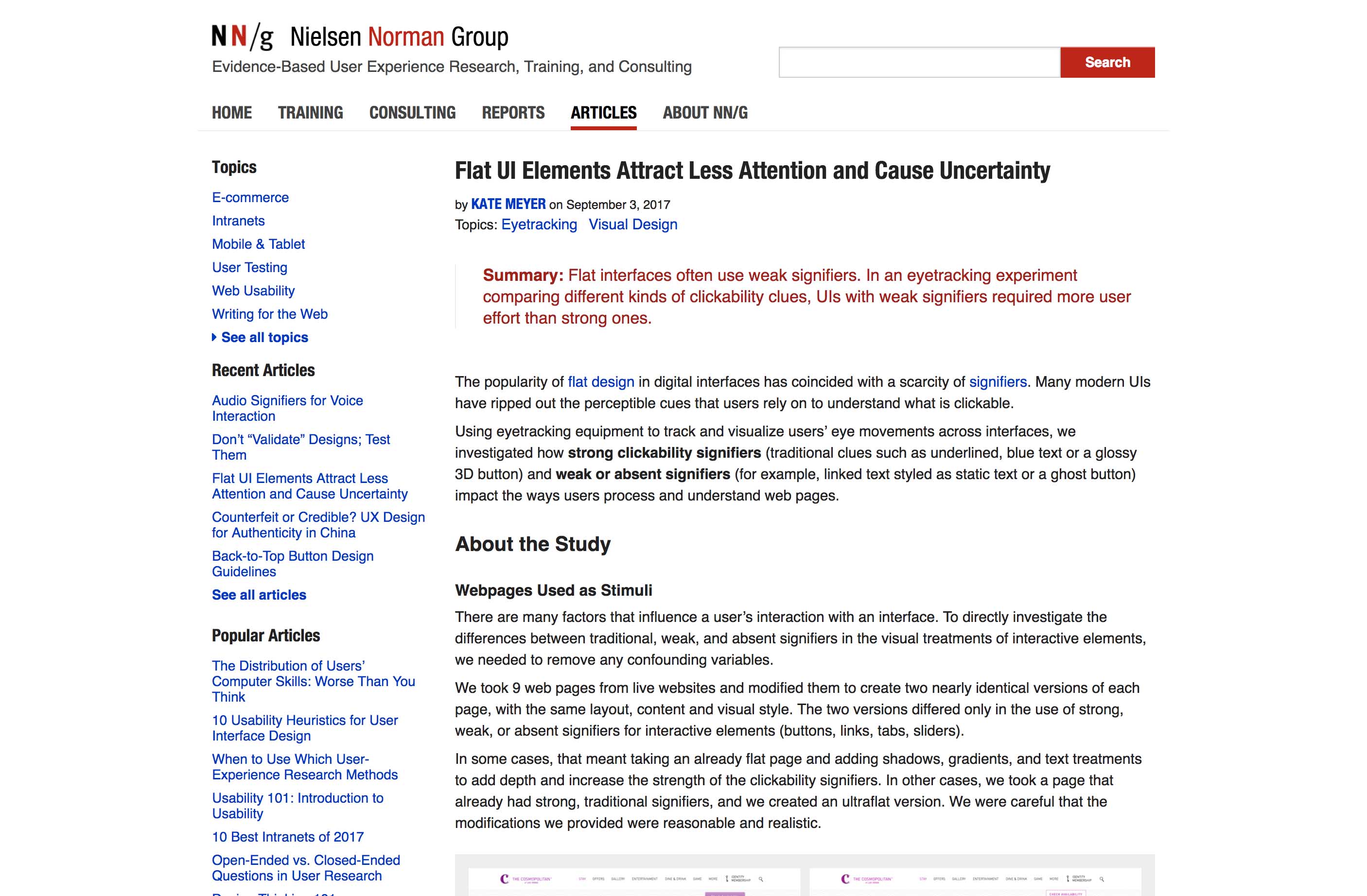 Flat UI Elements Attract Less Attention and Cause Uncertainty, une étude sur l’utilisabilité du flat design et quand est-ce que des boutons flat peuvent parfois fonctionner et quand ils fonctionnent moins bien