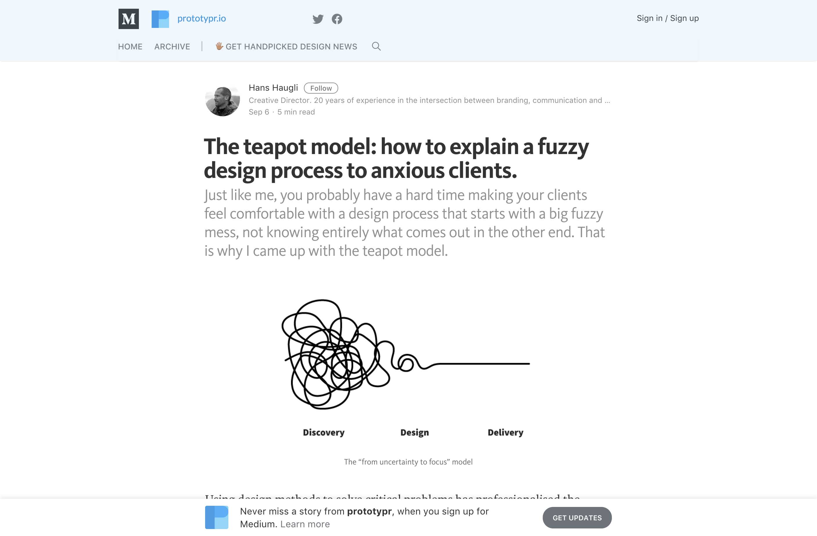 The teapot model: how to explain a fuzzy design process to anxious clients