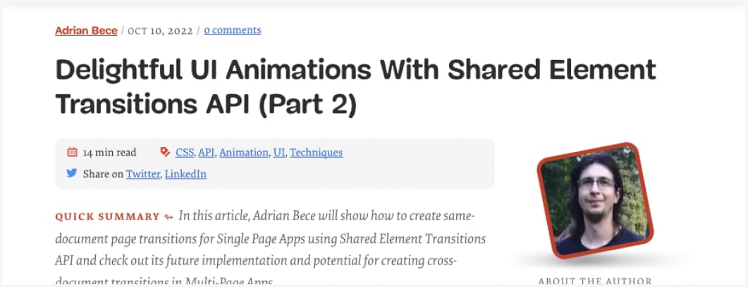 Some really nice things you can do when animating UI using Shared Element Transition API (also kudos for the prefers-reduced-motion example for accessibility)