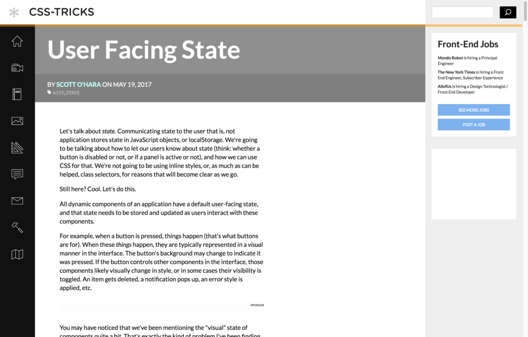 Au programme : Progressive Web Apps, design d’animation, FOMO et médias sociaux, icônes, processus mobile, typographie, nouvelles possibilités de capteurs mobiles, AMP, de l’inspiration de palette de couleur, des tutoriels d’icônes vectorielles CSS et SVG tutorials et un petit pack d’icônes très sympa.