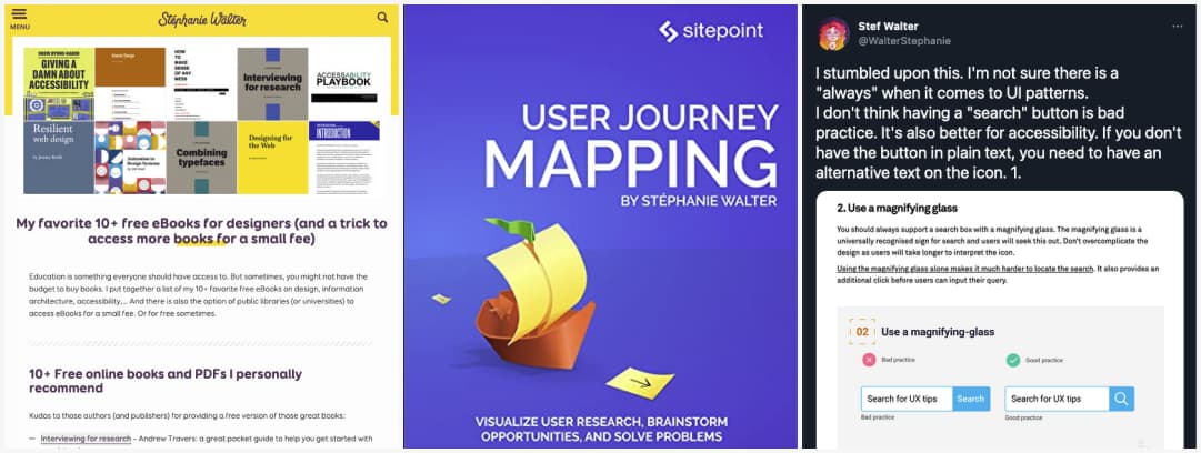 Speaking of ebooks: didn’t know, but if you have an access to the O’reilly learning platform, you can read my ebook on user journey maps online. This is really cool.