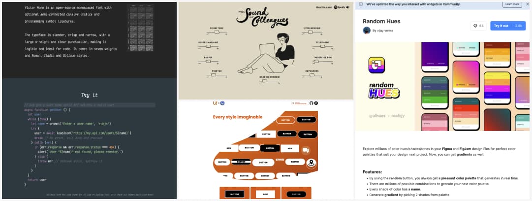 Sometimes, all you need is a little bit of randomness to help you get color scheme inspiration. There’s a figma plugin for that (just be careful with contrasts when pairing those)
