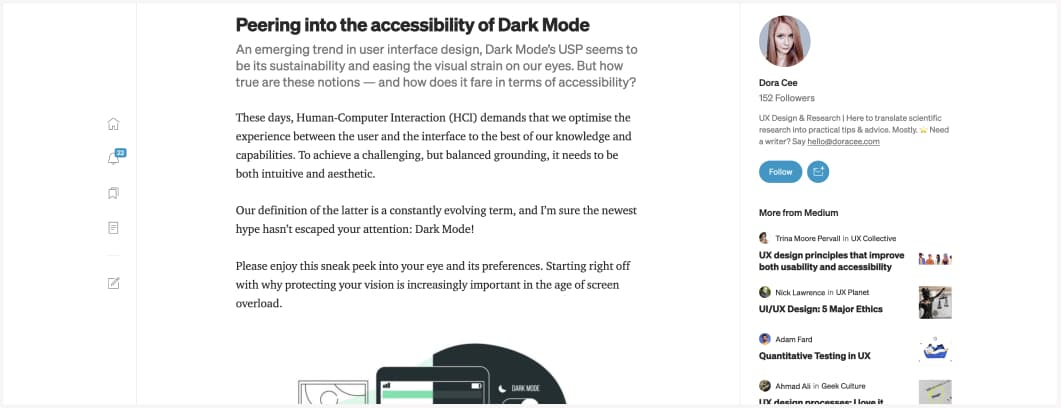 Peering into the accessibility of Dark Mode. Dark Mode’s USP seems to be its sustainability and easing the visual strain on our eyes. But how true are these notions — and how does it fare in terms of accessibility? Thank you Dora Cee for debunking a few myths around dark mode.