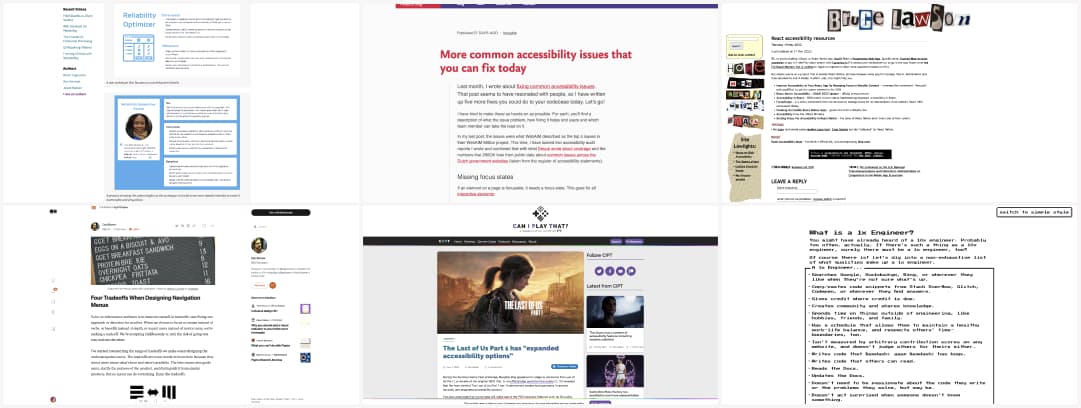 - More common accessibility issues that you can fix today: missing focus states, captions and transcriptions, invalid HTML, heading that don’t describe their section and keyboard navigation