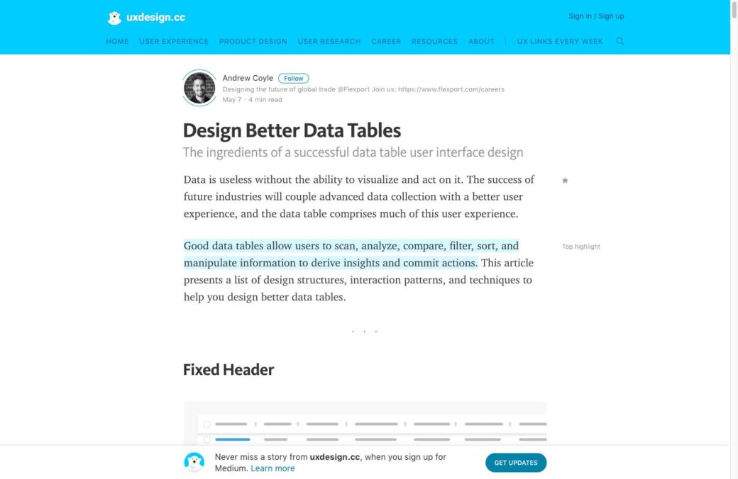 Un condensé de bonnes pratiques en matière de design de tableaux : Design Better Data Tables – The ingredients of a successful data table user interface design