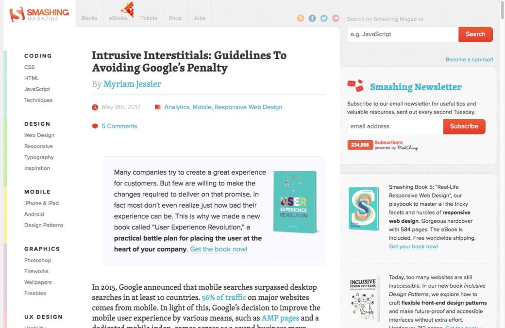 Intrusive popups, banners or overlays (called interstitials) can be penalized