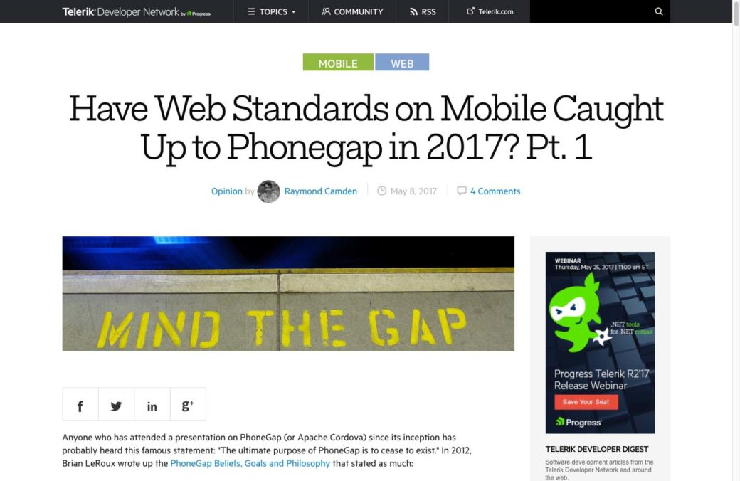 « Have Web Standards on Mobile Caught Up to Phonegap in 2017? Pt. 1 » Interesting question :)
