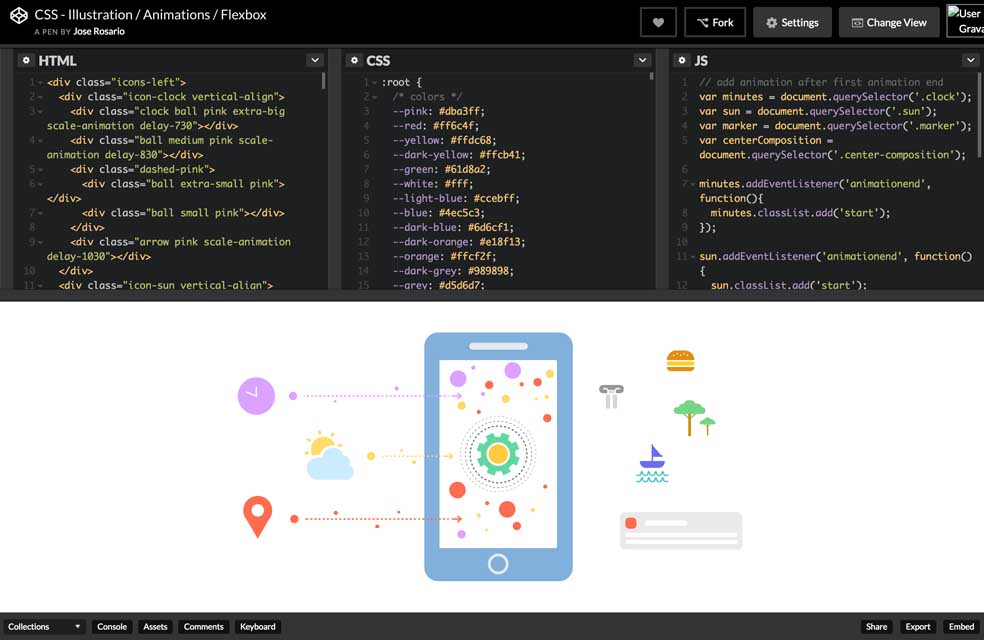 CSS – Illustration / Animations / Flexbox in a cute codepen