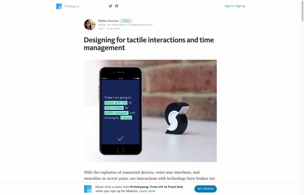 Designing for tactile interactions and time management