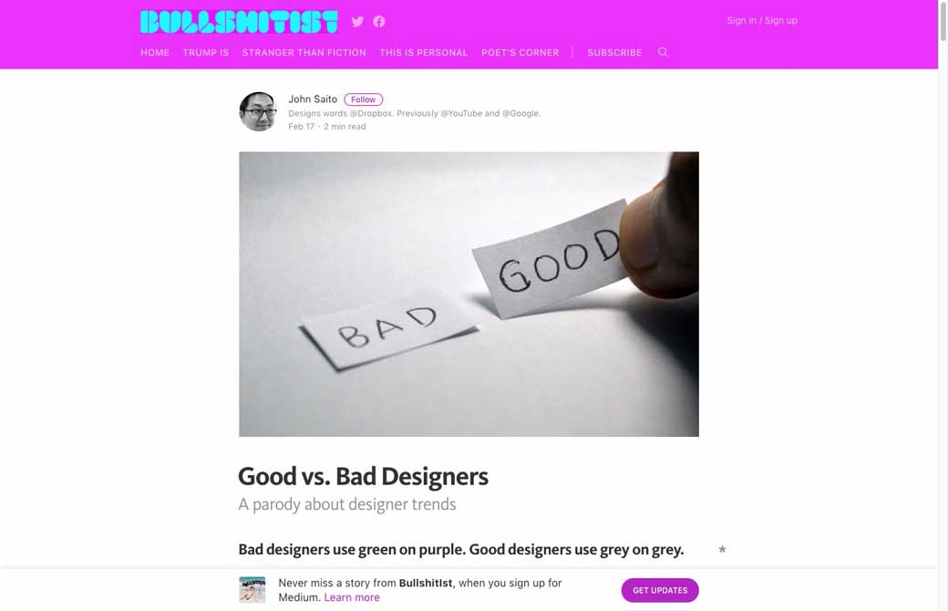 Au programme : des dessins de chats, de la lecture sur la productivité, alternatives au burger menu sur mobile, workflow de designer boosté par les symboles Sketch, combiner des icônes, formulaires et messages d’erreur, recherche utilisateur, design de produits et de jolies illustrations. Du côté des ressources quelques tutoriels CSS (checkbox et viewport units), outil de dégradé, une application pour jouer des sons en travaillant et des outils pour mieux comprendre le HTML.