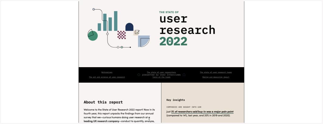 The state of user research 2022, interesting results on what user research typically looks like: profiles, tools, methods, salaries, how they became UXRs, what makes them unhappy, etc.. Mostly in the US but also from around the world.