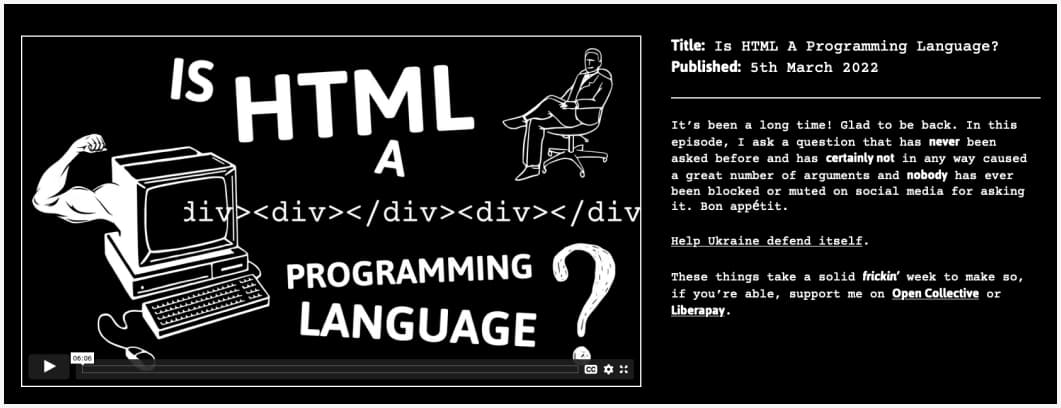 Is HTML A Programming Language? A 6 minutes amazing video by @heydonworks, in case you still needed convincing. Also, there’s a horse. It’s important!