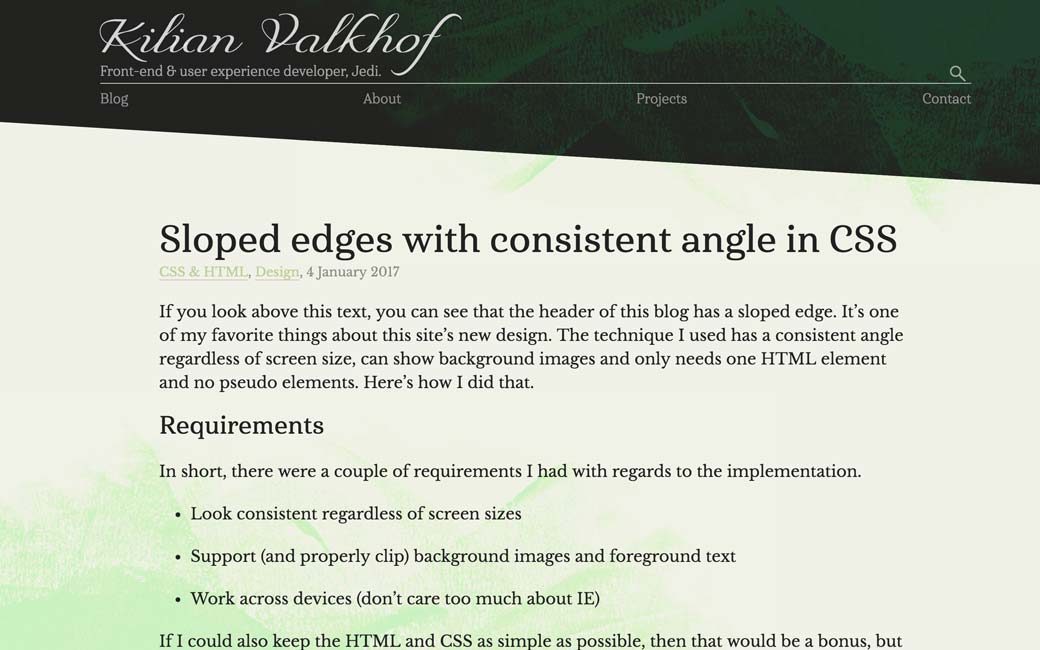 Sloped edges with consistent angle in CSS, des techniques CSS pour créer des bords penchés
