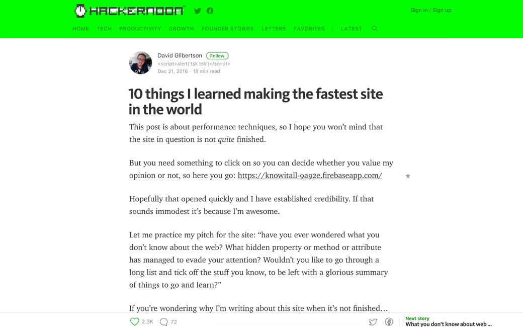 10 things I learned making the fastest site in the world, un petit retour sur de la performance web