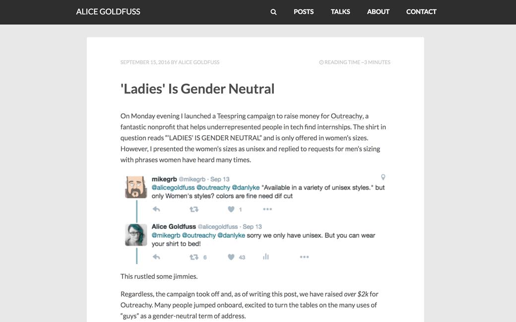 Expérimentation intéressante sur le genre neutre dans la communauté ‘Ladies’ Is Gender Neutral